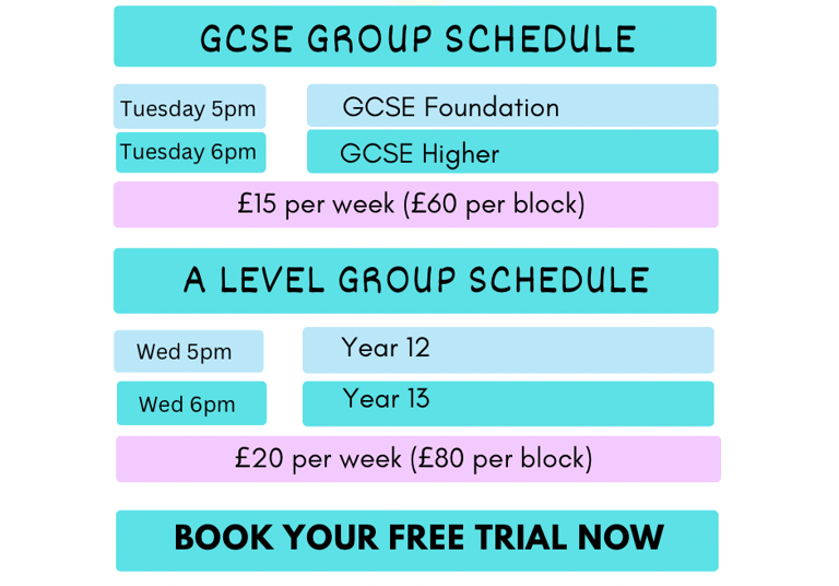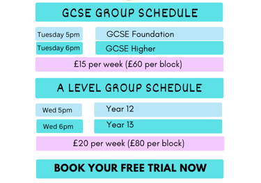 Our one to one sessions and group courses offer something to suit all students preparing for their GCSEs or A Levels.